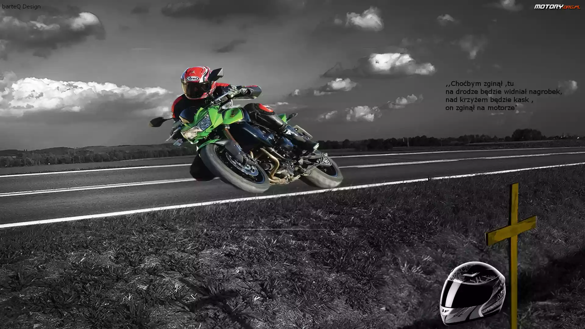 Kask, Droga, Krzyż, Motocyklista, Motocykl