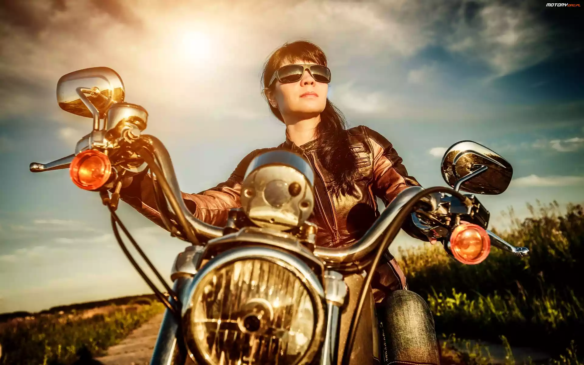 Pola, Droga, Motocykl, Dziewczyna, Retro, Motocykl