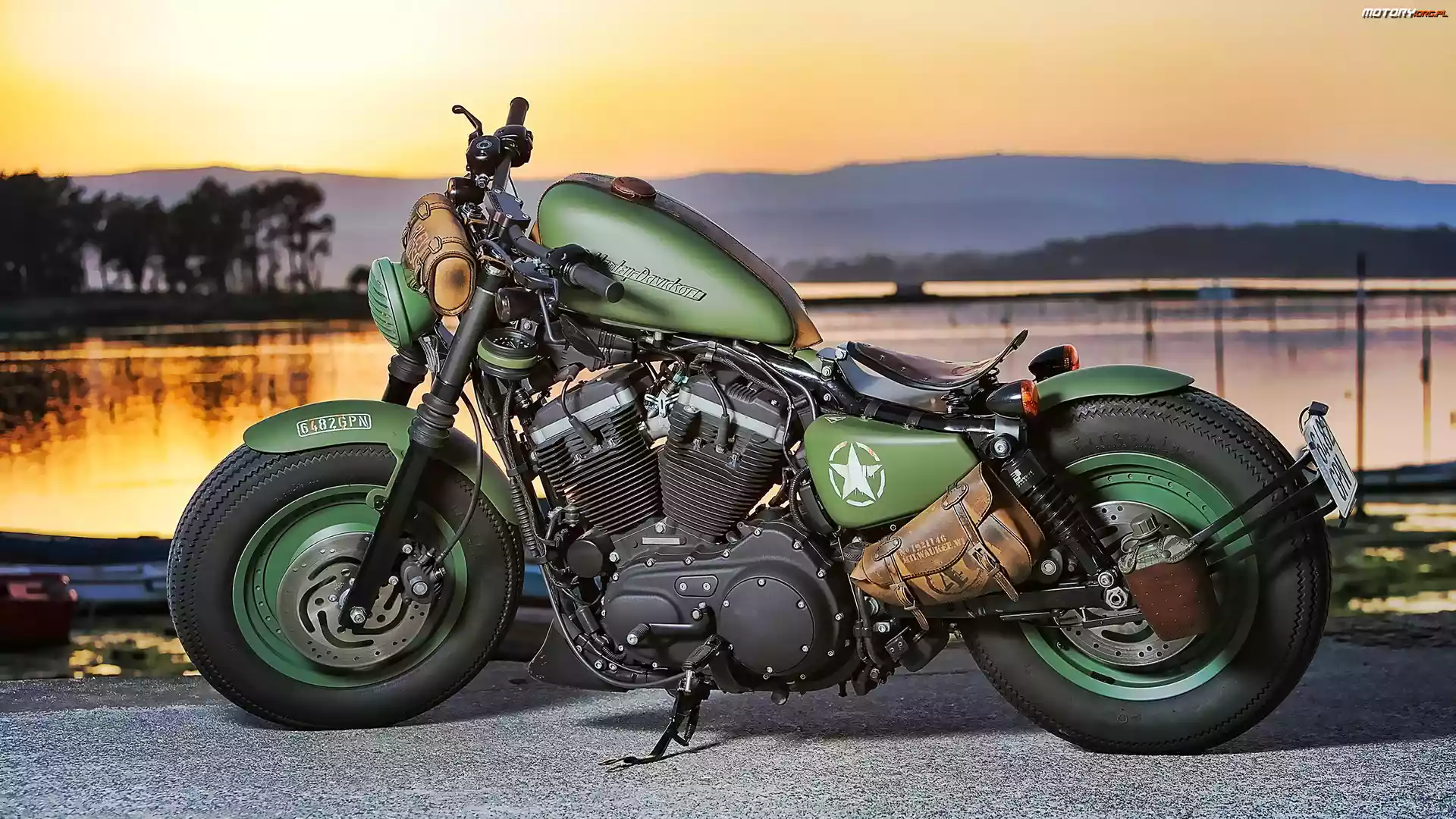 Motor Motocykl, Harley-Davidson Sportster Iron 883, Wojskowy, Zielony